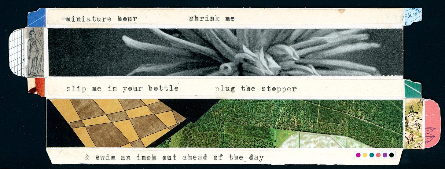 “Margaret is the boss, so you suppose it’s okay that she leaves early. Actually, you’re glad. By five to six the offices are empty, quiet-aired. The cupboard of cleaning supplies is just large enough for a chair to fit between the boxes of bleach and stinky rags, so you can sit and look at the list of jobs for that night.”